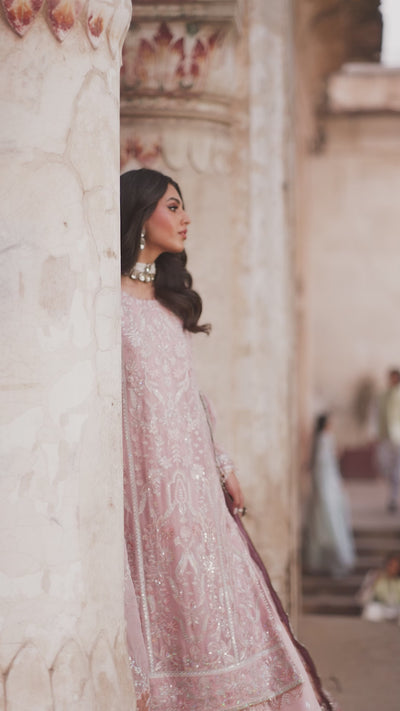 - Sequins Embroidered Pink Organza Pallu (2 Sides)